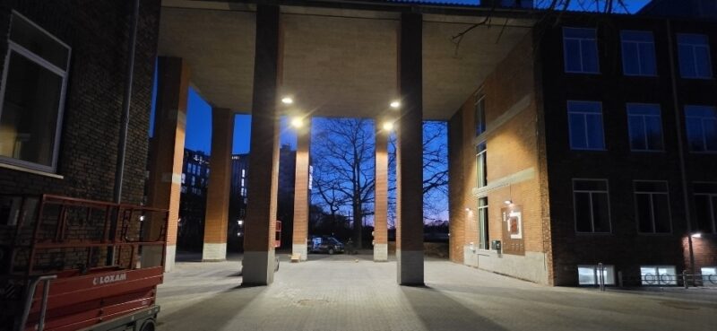 Løsningen sikrer et ensartet lysniveau og understøtter bygningens arkitektur.