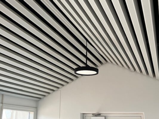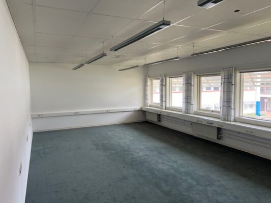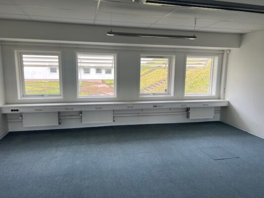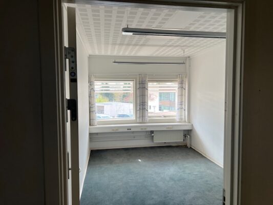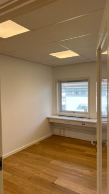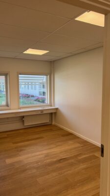 Et gammelt kontor fra 1990’erne i en kontorejendom i Birkerød er blevet moderniseret til nutidens standarder for en ny lejer med energibesparende LED-løsninger. Der er opsat nye vægge med glas, hvilket gør lokalet mere lyst. De gamle armaturer er udskiftet med moderne LED-lamper fra SG Armaturen, som har indbyggede dagslyssensorer.